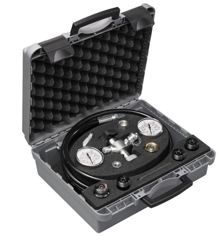 Kompletná sada na naplnenie hydraulických akumulátorov, reguláciu tlaku a testovanie.