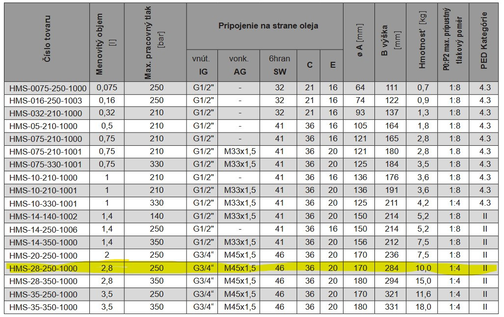 Membránový akumulátor - objem 2,8 liter - max. tlak do 250 barov... Celý popis