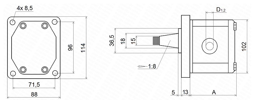 Kategórie: Čerpadlá, Príruba ø 36,5mm / hriadeľ kužel 1:8