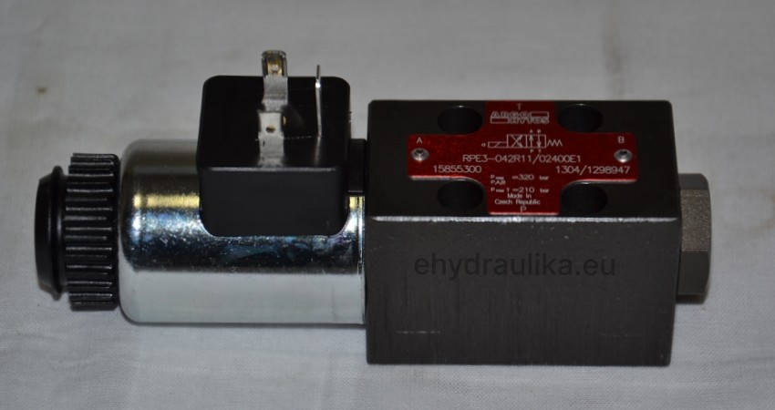 Jednocievkový 4/2 hydraulický rozvádzač, elektricky ovládaný, svetlosť DN04, zástavba CETOP 02. Napätie na cievkach 24VDC. Konektory nie sú v cene ventila. Maximálny tlak 320 bar.