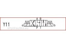 Dvojcievkový 4/3 hydraulický rozvádzač so strednou polohou port P zavretý, porty A,B prepojené s portom T, elektricky ovládaný, svetlosť DN04. Napätie na cievkach 230VAC. Konektory (2ks) sú v cene ventila.