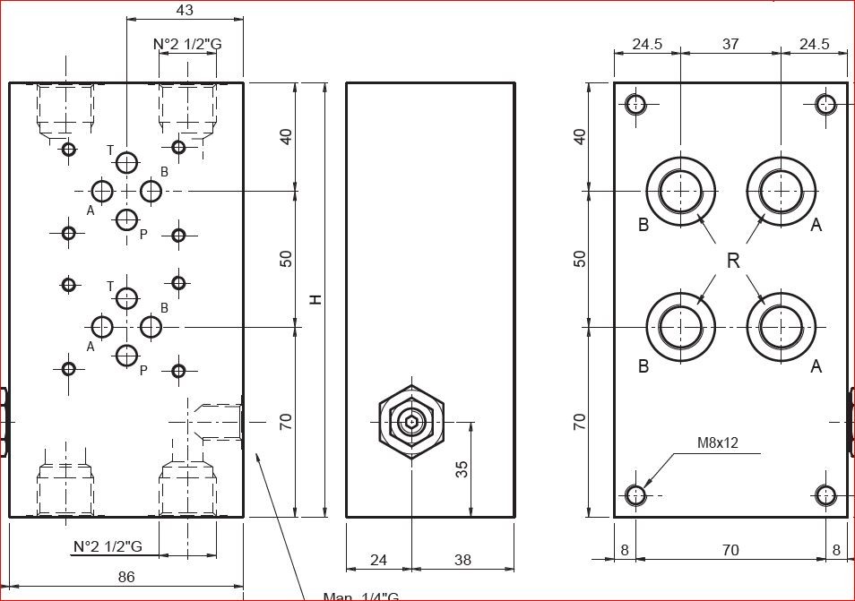 pripojenie hadíc, trubiek ... 4x závit vnútorný G 1/2" BSPP (vetvy P,T)