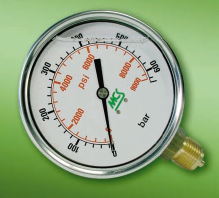 Glycerínový manometer s rozsahom 0-250 bar, priemer 100mm, pripojovací závit G1/2", spodný vývod.