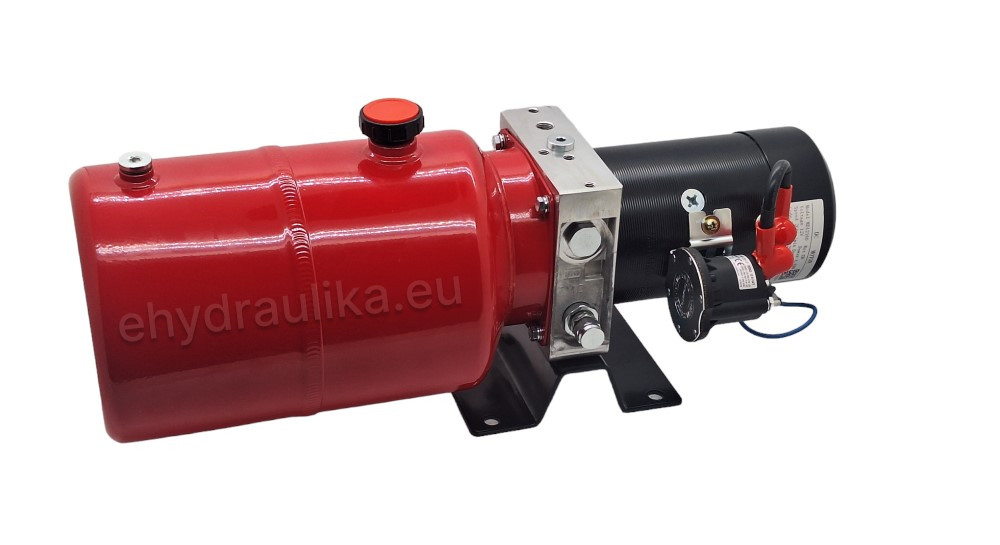 Kompletný hydraulický zdroj, čerpadlo 4,2cm3/ot. Max tlak 9 MPa (90bar), 6L nádrž oceľová, 12V motor s výkonom 2,0KW a rýchlosťou 2700ot./min. Prietok max 11,3L/min. Slúži ako zdroj tlaku pre všestranné použitie. ovládanie valca, prívesu, sklápača a pod. Agregát obsahuje aj ventil na spúšťanie zavažia dole. Agregát obsahuje aj ventil na spúšťanie zavažia dole.