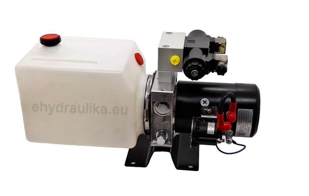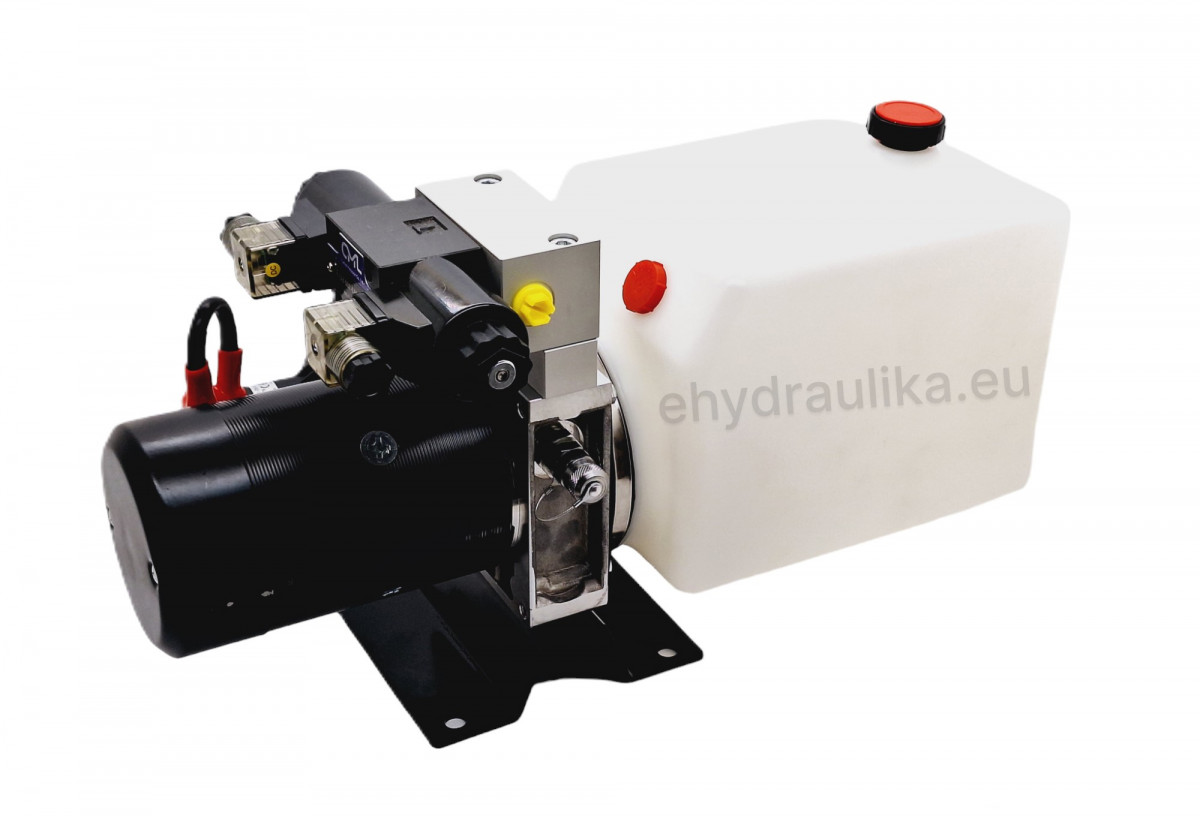 Kompletný hydraulický zdroj, čerpadlo 5,8 cm3/ot. Max tlak 6,5 MPa (65 bar), 6L nádrž oceľová, 12V motor s výkonom 2,0KW a rýchlosťou 2700ot./min. Prietok max 15,6 L/min. Slúži ako zdroj tlaku pre všestranné použitie. ovládanie valca, prívesu, sklápača a pod.