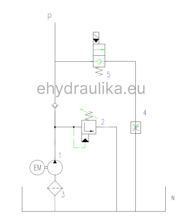 Kompletný hydraulický zdroj, čerpadlo 5,8cm3/ot. Max. tlak 7 MPa (70bar), 6L nádrž oceľová, 24V motor s výkonom 2,2KW a rýchlosťou 2300ot./min. Prietok max 13,3 L/min. Slúži ako zdroj tlaku pre všestranné použitie, ovládanie valca, prívesu, sklápača a pod. Agregát obsahuje aj ventil na spúšťanie zavažia dole.