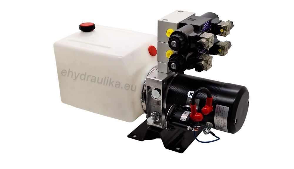 Kompletný hydraulický zdroj, čerpadlo 2,5cm3/ot. Max. tlak 16 MPa (160bar), 6L nádrž oceľová, 24V motor s výkonom 2,2KW a rýchlosťou 2500ot./min. Prietok max 6,5L/min. Slúži ako zdroj tlaku pre všestranné použitie, ovládanie valca, prívesu, sklápača a pod.