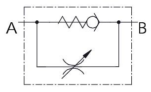 Škrtiaci ventil s jednosmerným ventilom VRF 03C slúži na reguláciu prietoku v hydraulickom systéme. Pripojenie do potrubia, závit vnútorný G1/2".